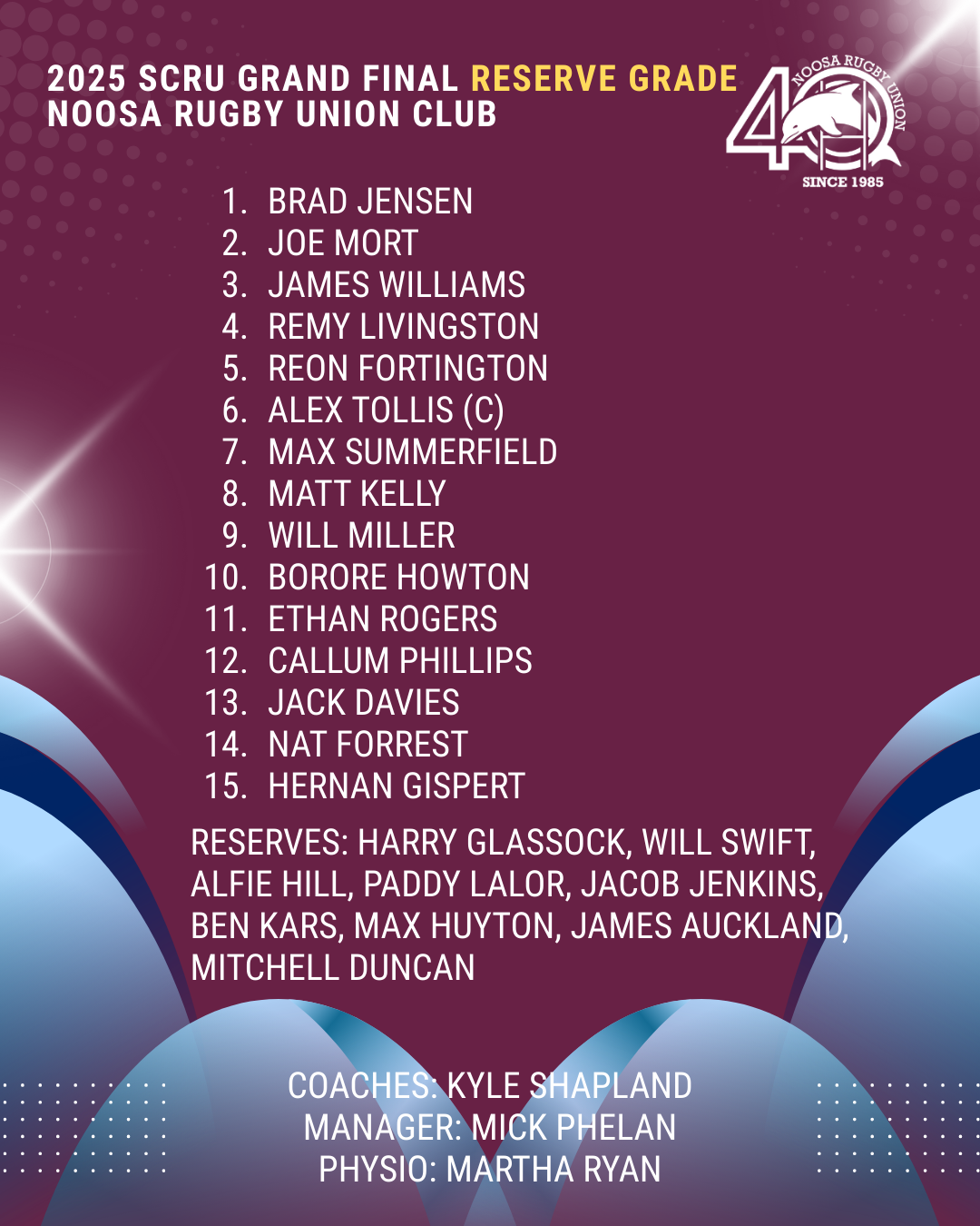 On behalf of the Noosa Dolphins, it is my pleasure to extend a very warm welcome to our players, members, sponsors, volunteers, and supporters joining us for this special occasion. We are proud to host the 2025 Sunshine Coast Rugby Union Grand Finals here at Dolphin Oval.