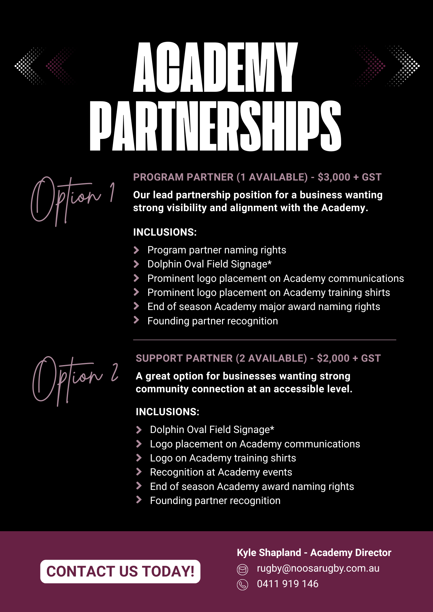 Help us establish a long-term development pathway for aspiring youth athletes and invest in the future of Noosa rugby. Contact Kyle Shapland at rugby@noosarugby.com.au
